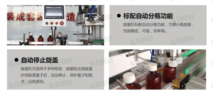 4、旋蓋機(jī)可適用于多種瓶型,旋蓋輪達(dá)到旋蓋時(shí)間旋緊蓋子后,自動(dòng)停止,保護(hù)蓋子和瓶子,以免損傷。